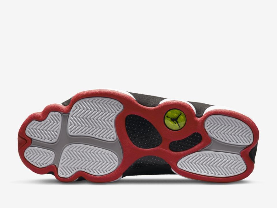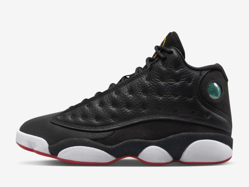 Bring your deftness to the forefront with the return of this stealthy colorway that dropped in '98. Crafted to the original specs, the AJ13 "Playoffs" lets you outmaneuver the proverbial playing field, setting every 'fit up for a win. Dimpled Black side panels in premium leather bring all the high-fashion feels, while the green cat's eye emblem and panther paw-inspired outsole honor MJ's "Black Cat" alter ego. Lace up and become a legend.